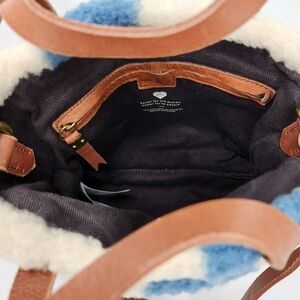 Madewell Transport White with Light Dark Blue Checkered Squares Fuzzy (Re)Sourced Sherpa Dual Tan Leather Top Handles & Detachable Adjustable Crossbody Strap Small Crossbody Bag