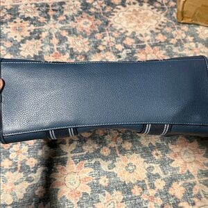 Stylish Coach in navy leather. Features bold logo straps. Ideal for work or travel. I just purchased this bag about a month ago and have barely used it. I love it, but it’s just sitting. It’s a perfect work bag! I spent almost $400 on it. Smoke free home