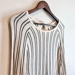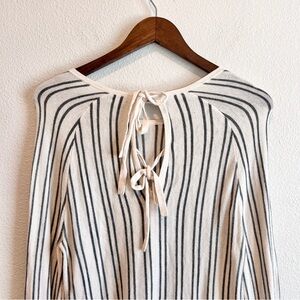 Hinge Striped Sweater Small Long Sleeve Tie Back Cream Gray Knit Preppy Boho