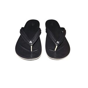 Sleek black CROCS sandals with a textured strap. Ideal for everyday comfort in a Women's 11 or Men's 9