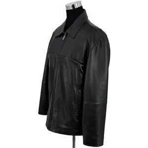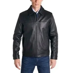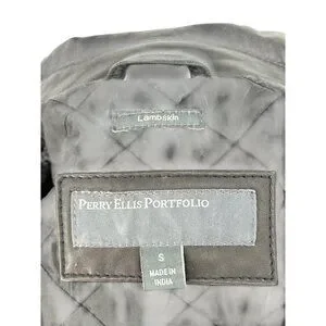 Perry Ellis Portfolio Mens Black Lambskin Leather Jacket