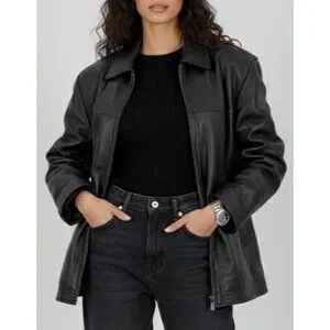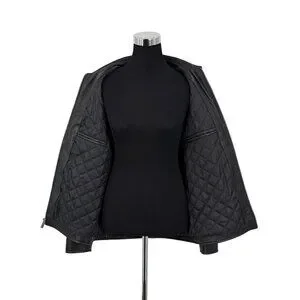 Crafted w/premium lambskin leather, this jacket offers a timeless look. Features a quilted lining for warmth & durability. Ideal for layering.