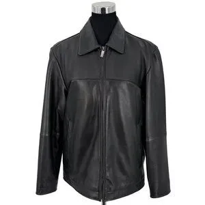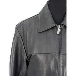 VTG Perry Ellis Portfolio Mens Black Lambskin Leather Jacket | 90s Quiet Luxury