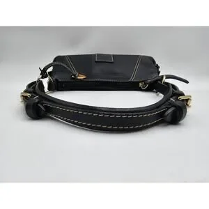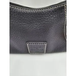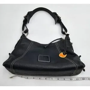 Y2K Dooney & Bourke Black Pebbled Leather Mini East West Slouch Hobo Duck Charm