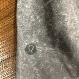 The Lululemon T.H.E. Shorts in Men's size Medium are athletic, linerless running shorts in a versatile gray color. Made from a blend of polyester, polyester blend, and elastane, these shorts feature a drawstring closure, moisture-wicking fabric, and a 9-inch inseam. Ideal for various activities like gym training, cross training, crossfit, basketball, and running, these lightweight and breathable shorts also have pockets for convenience. The tie-dye pattern adds a stylish touch to these athletic shorts, making them perfect for all seasons
