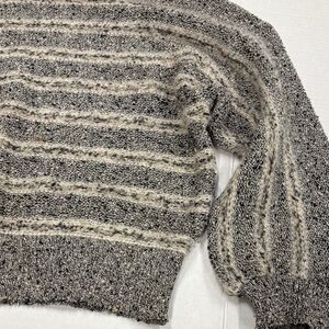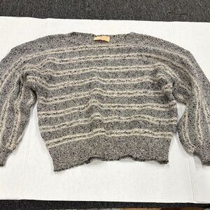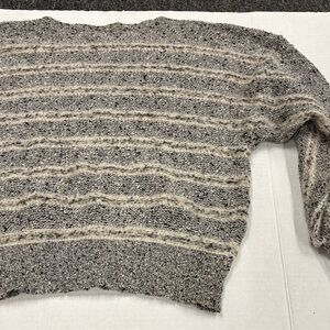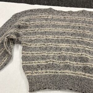 Stay cozy and stylish with this women's striped gray sweater. Perfect for any casual outing.
