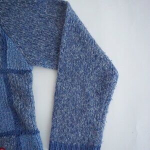 Vintage Koret City Blue Patchwork Heart Embroidered Snowflakes Knit Cardigan L