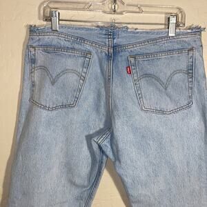 Levi’s original low rider jeans. Cut and Frayed waist and hem. Straight leg. Y2k, 90s vibe. Size 31. Inseam 26”