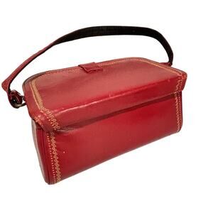 Vintage red leather box purse short handle shoulderbag unique mid century style