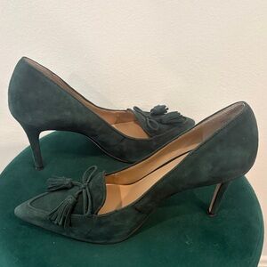 Elegant forest green heels with tassel detail. Ideal for a sophisticated look.