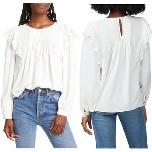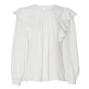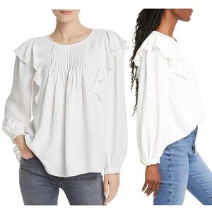 JOIE ACELYNN PINTUCKED RUFFLE-TRIM TOP IN PORCELAIN