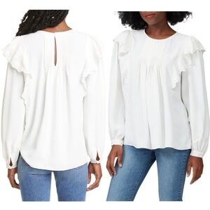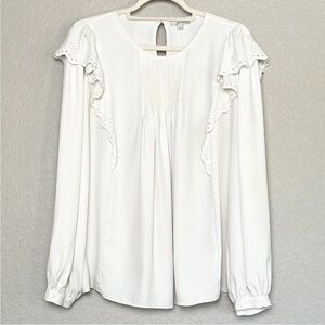 JOIE 70s Eyelet Embroidered Ruffle Pintuck Long Poet Sleeve Peasant Blouse L