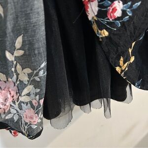 Torrid Midi Challis Skirt Womens Size 00 (10) Black Floral Fit Flare Swing Flowy