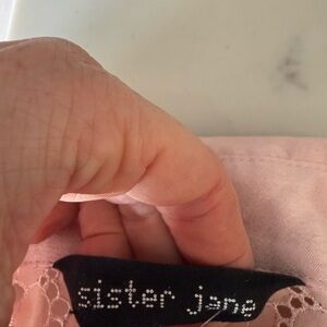 Sister Jane Elegant Pink Eyelet Dress Semi Sheer Knee Length Slit On Side Size M