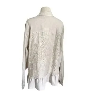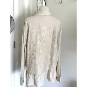 NWT Simply Noelle Shirt Size 12-14 Tan lace Back Ruffle TradWife Boho