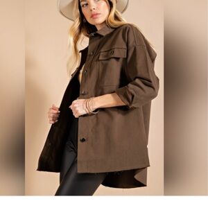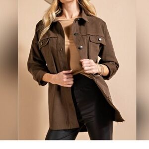 Stay stylish and comfortable with this brown shirt/jacket- (Shacket)featuring bold white “ALL YOU NEED IS LOVE”text on the back. Perfect for a casual day out.