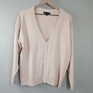 Ann Taylor Cozy Soft Oversized Cardigan Sweater Sz S Ivory Beige V-Neckline