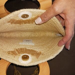 Vibrant floral clutch with a unique wooden accent. Features a colorful design and chain strap. Ideal for any occasion.