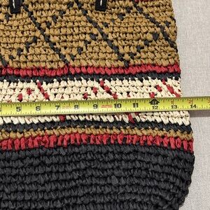 NWOT Woven Natural Material Bag-Black/Brown/Red/Cream-Faux Leather Straps-Lined