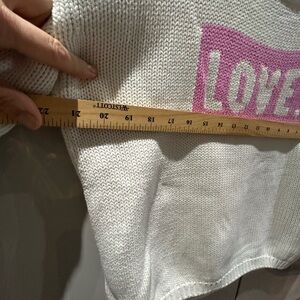 Knit sweater with "LOVE" graphic. 100% cotton material. Measures approximately 22 inches in length from shoulder to hem. Size S N#1