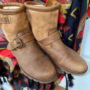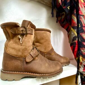 RARE & limited EDITION genuine shearing iconic rustic TRIBE BELTED boots super versatile & practical and super warm they come in timeless rustic tribe leather that only gets better with time