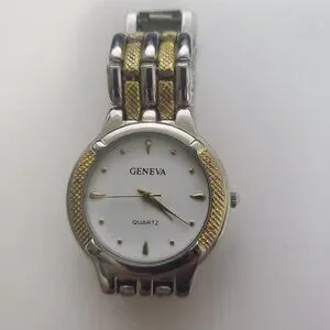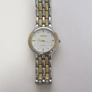 Geneva Watch Women 28mm Quartz Gold Silver Tones White Dial Round Analog Clasp