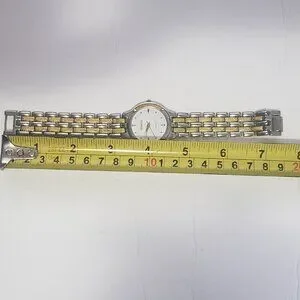Geneva Watch Women 28mm Quartz Gold Silver Tones White Dial Round Analog Clasp Strap New battery