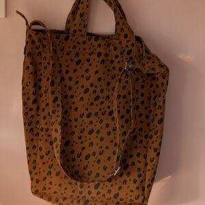 Like new leopard tote bag from Baggu. Fits a 13" MacBook with room for a water bottle, notebooks, etc. Super cute, used a handful of times. No signs of wear and tear.