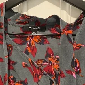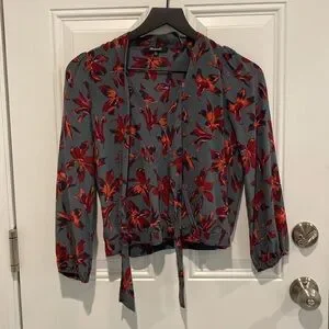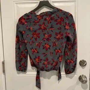 Madewell Women’s Size XS Silk Tie Neck Wrap Top in Winter Orchid Multi Green