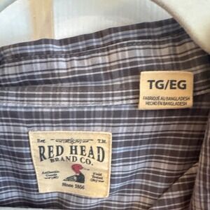 RedHead Brand Co Mens XL Plaid Long Sleeve Button Down Shirt Grey Black White