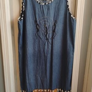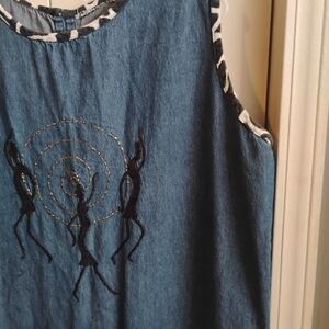 Chic sleeveless blue dress featuring a unique embroidered design. Perfect for casual outings or a day at the beach.