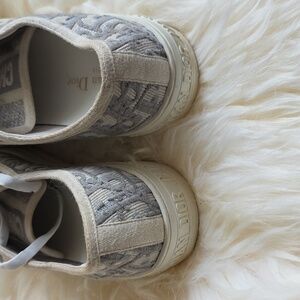 Elegant Christian Dior sneakers in gray and white. Features a lace-up design.