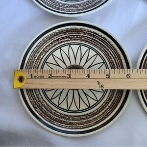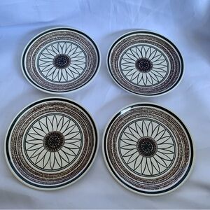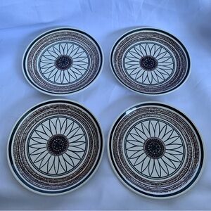 Good preowned vintage condition, made in USA, Cavalier Ironstone Casa Del Sol retro bread plates measuring 6 3/8”, 4 piece set.