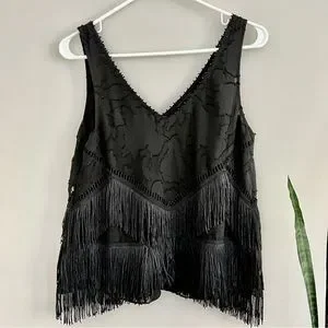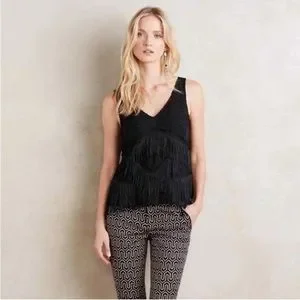Anthropologie HD in Paris Tiered Fringe Sleeveless Blouse Black 4