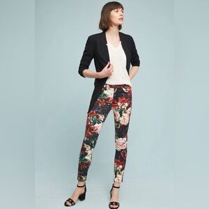 7 For All Mankind • Floral Red Black Skinny Pants