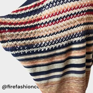 Umgee Boho Hippie Stripe Knit Open Cardigan Large