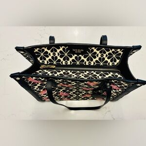• Interior leather logo patch + fabric care tag (authentic Kate Spade details)