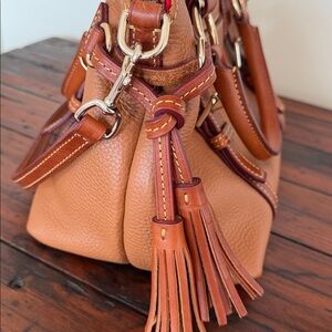 Dooney & Bourke Bristol Caramel Leather Satchel With Detachable Strap.