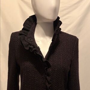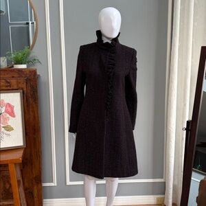 DKNY Dark Purple Tweed Wool Ruffle Coat – Cabernet – Size 6