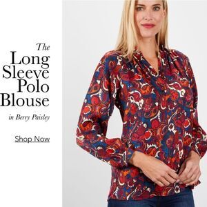 Tucker Long Sleeve Polo Blouse Berry Paisley in Stretch Georgette Silk Top