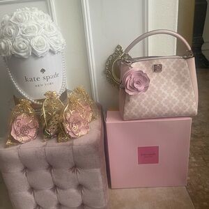 Kate Spade New York Flora Flower Novelty Bag Charm New with tags $98 comes with gold dustbag. The Perfect gift! Color: Pink Horizon Perfect for your favorite bag! I added this bag charm to a few bags that are also available in my closet. Visit and bundle. Perfect for your favorite handbag. Love the logo on flower. Style Number KE691 Measurements Length: 3.0" Height: 3.0" Width: 1.3" Materials Smooth leather Two way script logo lining Features Zip around closure Foil embossed logo Made In Imported Editor's Notes This clever keychain will put an end to the never-ending scramble of trying to find your keys in your bag. How good is that? Elegant pink rose keychain accessory, perfect for adding a touch of charm to your bag or keys.