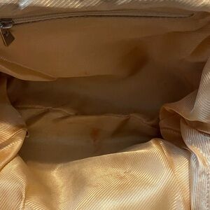 There is some fraying on the outside, but generally, this purse is in decent condition. It is a stunning piece. This bag measures 11" across and 9" high, not including the handles. Comes from my smoke free home.