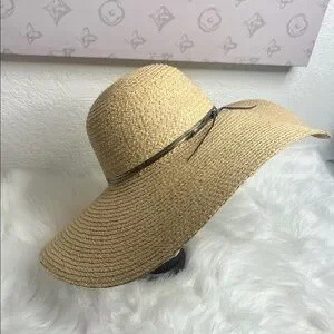 Elevate your summer look with this chic tan straw sun hat. Features a stylish ribbon accent for added flair.