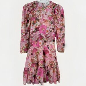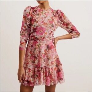Ted Baker Mildrd Ruffle Floral Mini Dress Women Ted 0 US 2 Mesh Pink