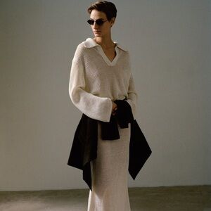 Effortlessly elevated and beautifully textured, this Dagmar open-weave crochet knit sweater is crafted from 100% softly structured linen for a breezy, modern silhouette. Designed with a relaxed, elongated fit and finished with a wide polo collar, this premium Scandinavian piece blends minimalism with luxury, perfect for spring and summer layering, resort wear, or elevated everyday styling.