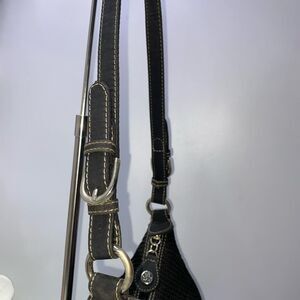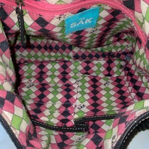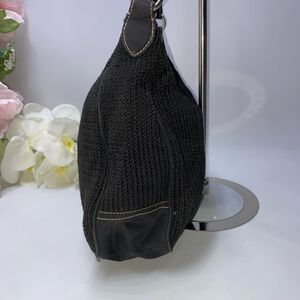 The Sak Black Crochet Shoulder Bag Leather Trim Medium