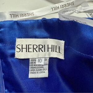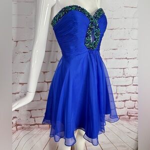 SHERRI HILL Blue Strapless Beaded Neckline Pintuck Bodice Chiffon Dress Size 10