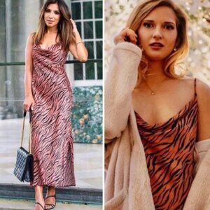 Anthropologie Brand Elyse Bias Cut Slip Dress Tiger Print NWT Small