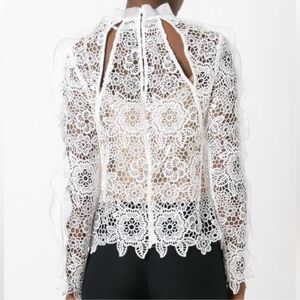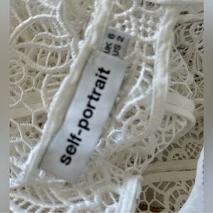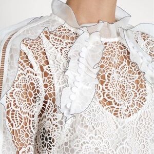 SELF-PORTRAIT White Cutout Ruffle Guipure Lace Top Blouse Size: US 2