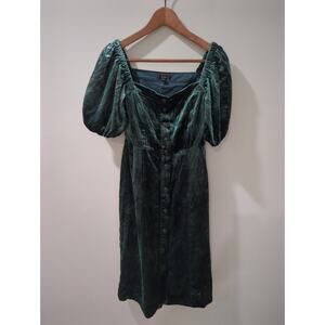 J Crew Puff Sleeve Green Velvet Dress NWT